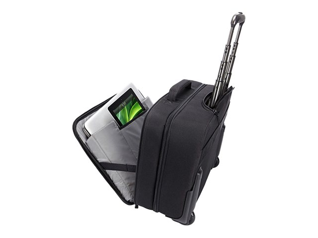 Conjuguant des lignes modernes et un côté purement pratique, cette valise à roulettes peut accueillir un ordinateur portable 17,3'' et un iPad ou une tablette 10,1", ainsi que tous les objets dont vous avez besoin pour votre voyage d'affaires. Elle offre aussi un espace pour transporter vos vêtements de rechange et vos outils de travail pour un séjour d'une nuit.