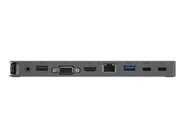 | Interfaces | 1 x combo jack microphone/casque - mini-phone 3,5 mm 1 x USB 2.0 1 x affichage / vidéo - VGA - 15 broches HD D-Sub (HD-15) 1 x audio / vidéo - HDMI - HDMI de 19 broches de type A 1 x réseau - RJ-45 1 x USB 3.1 Gen 1 1 x USB-C 3.1 1 x USB-C (port d'alimentation) |