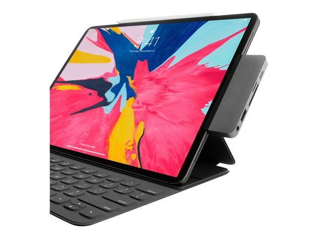 Hub USB-C de forme adaptée pour l'iPad Pro, l'iPad Air et l'iPad mini 6. Cette station d'accueil USB-C se fixe sur le côté de l'iPad en ajoutant 6 ports : Sortie HDMI 4K 60Hz, alimentation USB-C, et plus encore.