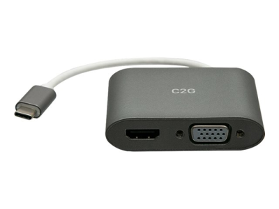 C2G USB C to HDMI & VGA Dual Monitor Adapter - 4K 30Hz - White - Adaptateur vidéo - 24 pin USB-C mâle reversible pour 15 pin D-Sub (DB-15), HDMI femelle - blanc - support 4K