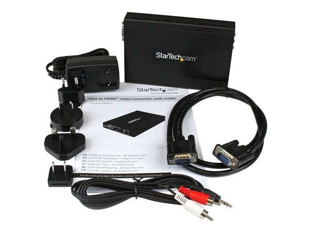 Ce convertisseur et scaler VGA vers HDMI permet de brancher votre signal vidéo VGA analogique à un écran HDMI numérique. Son scaler vidéo intégré règle le signal de sortie en fonction de n'importe quel écran HDMI ou presque. Il met le signal à l'échelle des résolutions choisies, jusqu'à 1080p.