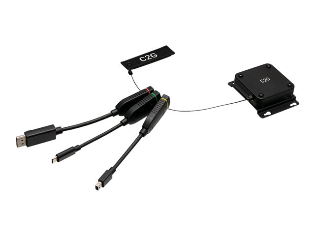 La boucle d'adaptateurs dongle 4K HDMI universelle rétractable est le complément parfait des salles de conférence, huddle spaces (bulles de travail), amphithéâtres ou salles de classe pour avoir la certitude que tout le monde peut se connecter. La configuration standard comprend des adaptateurs permettant de connecter pratiquement tous les appareils à l'écran de la salle, tout en prenant en charge une résolution vidéo jusqu'à 4K. Cette boucle d'adaptateurs comprend des adaptateurs HDMI vers DisplayPort, Mini DisplayPort ou port USB-C permettant de faire face à divers défis de connectivité.