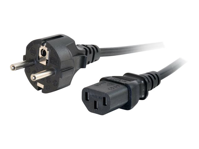 Une extrémité de ce cordon d'alimentation fonctionnera avec la plupart des ordinateurs de bureau, écrans, scanners, imprimantes et autres périphériques qui utilisent un connecteur d'alimentation protégé à 3 broches; l'autre extrémité est constituée d'une prise européenne Schuko à 2 pointes. Le connecteur femelle se branche directement à l'appareil, tandis que le connecteur mâle se branche à une prise de courant européenne standard. Ce cordon robuste AWG 16 de qualité supérieure est doté d'une conception entièrement moulée pour offrir une durabilité maximale et une durée de vie importante.