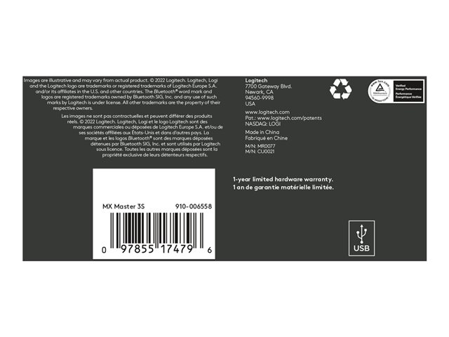 | Caractéristiques | Logitech Darkfield Laser Tracking, technologie Easy-Switch, fonction gestuelle, batterie rechargeable, repose-pouce, roue MagSpeed, DPI personnalisable, molette, technologie Quiet Clicks |