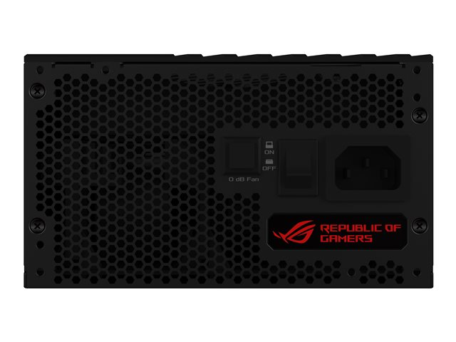 FonctionsCâbles à manchon, protection contre les surintensités, protection contre les surtensions, protection de surtension, protection de court-circuit, protection thermique, affichage OLED, entièrement modulaire, ASUS Aura Sync, refroidissement de 0 dB avec ventilateur à ailettes IP5X antipoussière, dissipateur thermique ROG
