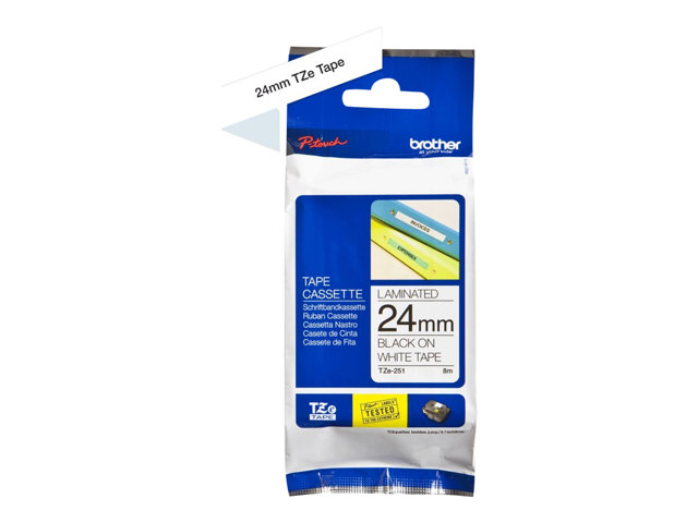 Brother TZeS251 - Bande adhésive laminée très résistante - noir sur blanc - Rouleau (2,4 cm x 8 m) 1 rouleau(x) - pour P-Touch PT-3600, 9700, 9800, D600, E500, E550, H500, P700, P750; P-Touch EDGE PT-P750