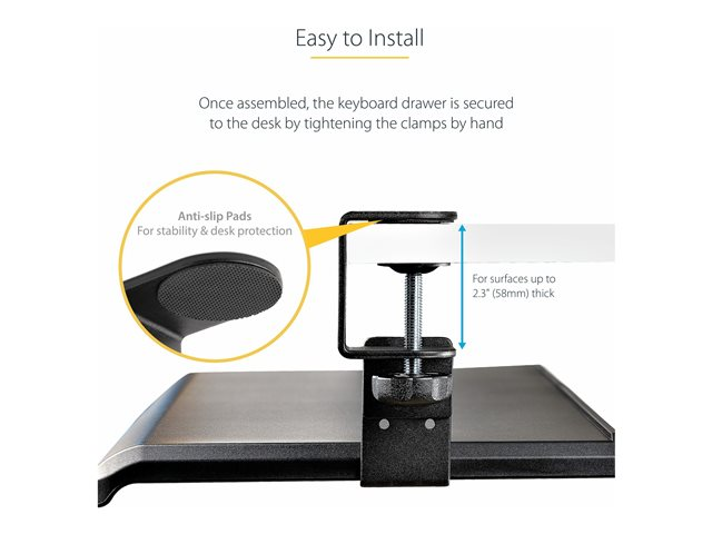Support Clavier Coulissant Sous Bureau - Porte Clavier Ergonomique à Pince en C - Tiroir Clavier Coulissant, Jusqu'à 12kg - Tablette Coulissante, Clavier et Souris (KEYBOARD-TRAY-CLAMP1).