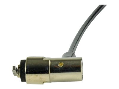 Antivol à encoche avec un corps étroit pour les ordinateurs portables possédant une encoche de sécurité proche des connecteurs. Egalement utilisable avec les écrans plats ayant une encoche prévue à l’arrière.