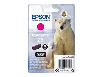 Epson 26 - 4.5 ml - magenta - original - emballage coque avec alarme radioélectrique/ acoustique - cartouche d'encre - pour Expression Premium XP-510, 520, 600, 605, 610, 615, 620, 625, 700, 710, 720, 800, 810, 820