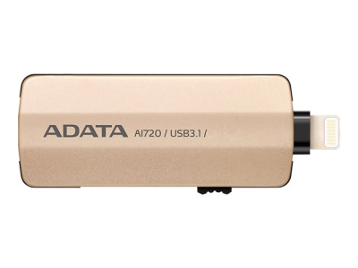 ADATA i-Memory AI720 - Clé USB - 64 Go - USB 3.1 / Lightning - or - pour Apple 10.5-inch iPad Pro; 12.9-inch iPad Pro; 9.7-inch iPad (5th generation); 9.7-inch iPad Pro; iPad Air; iPad Air 2; iPad mini 2; 3; 4; iPhone 6s, 6s Plus, 7, 7 Plus, 8, 8 Plus, X