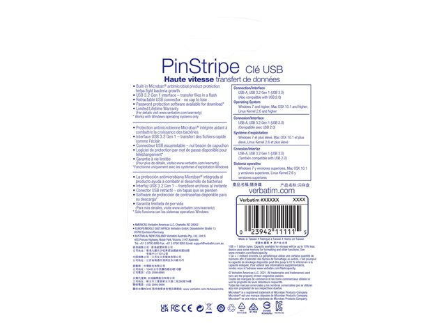 Verbatim PinStripe USB Drive - Clé USB - 128 Go - USB 3.2 Gen 1 - noir