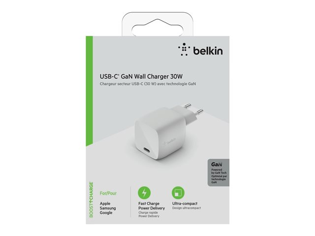Belkin BOOST CHARGE - Adaptateur secteur - 30 Watt - Fast Charge, PD (24 pin USB-C) - blanc WCH001VFWH