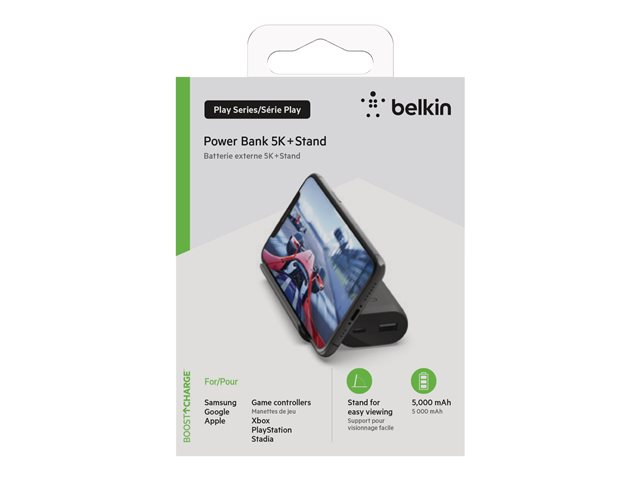 Belkin BOOST CHARGE - Play Series - banque d'alimentation - 5000 mAh - 12 Watt - 2 connecteurs de sortie (USB, 24 pin USB-C) - sur le câble : USB-C - noir