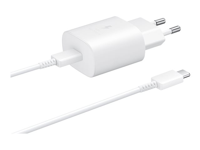 Samsung Fast Charging Wall Charger EP-TA800 - Adaptateur secteur - 25 Watt - 3 A - Ultra Fast Charge (24 pin USB-C) - sur le câble : USB-C - blanc - pour Galaxy A20, A50, A70, A8s, M30, M40, Note10, S20, S20 5G, S20+ 5G, Z Flip, Z Flip 5G