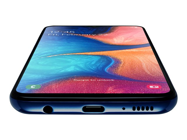 Samsung Galaxy A20e - 4G smartphone - double SIM - RAM 3 Go / Mémoire interne 32 Go - microSD slot - Écran LCD - 5.8" - 1560 x 720 pixels - 2x caméras arrière 13 MP, 5 MP - front camera 8 MP - bleu SM-A202FZBDXEF
