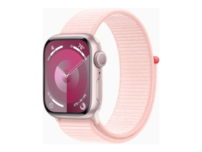 Apple Watch Series 9 (GPS) - 41 mm - aluminium rose - montre intelligente avec boucle sport - deux couches de matières textiles tissées - rose pâle - 64 Go - Wi-Fi, UWB, Bluetooth - 31.9 g