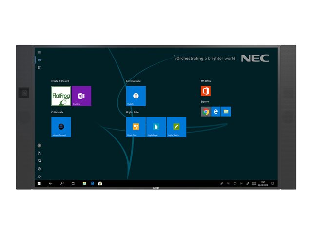 | Fourni avec | NEC OPS Slot-in PC (Windows 10 Professional), Huddly IQ camera, Conference Speakers (40 W), 2 Passive Pens |