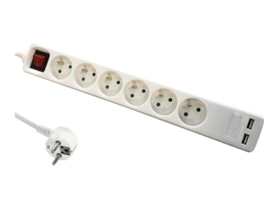 DLH DY-WU2941W - Coupe-circuit - 3680 Watt - entrée : alimentation - connecteurs de sortie : 6 (2 x USB, 6 alimentations) - 1.4 m cordon - blanc