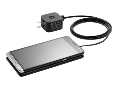 Réduisez l'encombrement des câbles et ne perdez plus de temps à rechercher le bon adaptateur grâce au chargeur sans fil HP Elite x3 toujours prêt et disponible en continu, qui utilise la technologie de charge inductive Qi pour charger votre HP Elite x3 sans fil.