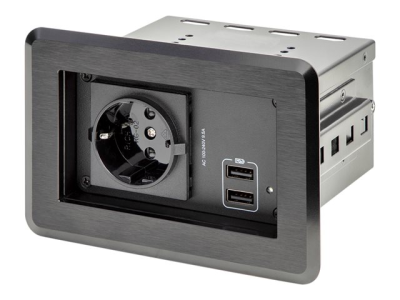 Ajoutez une prise secteur et deux ports de charge USB dans votre salle de conférence, votre salle de classe ou votre salle de réunion grâce à ce hub d'alimentation pour salle de réunion.