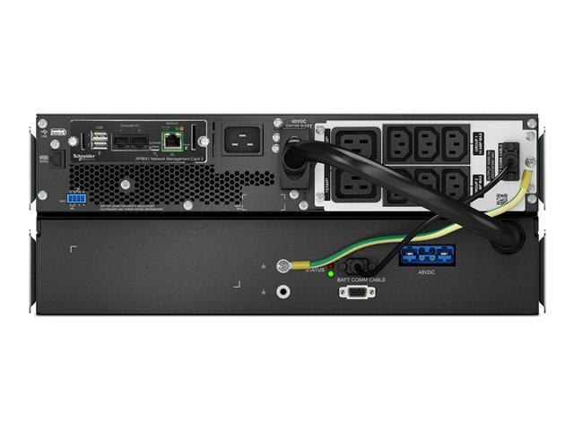 APC Smart-UPS en ligne - Onduleur (rack-montable) - CA 220/230 V - 2700 Watt - 3000 VA - USB, Ethernet 10/100/1000, serial - connecteurs de sortie : 8 - 4U - 1.83 m cordon - noir, argent - avec APC UPS Network Management Card SRTL3000RM4UXLI-NC