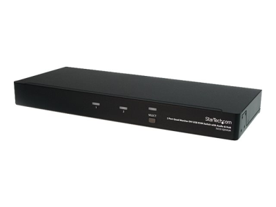 Le commutateur KVM USB DVI Dual-Link SV231QDVIUA 4 écrans et 2 ports permet à deux PC comprenant chacun quatre sorties vidéo DVI de partager des écrans, un microphone et un ensemble de haut-parleurs, un clavier et une souris, ainsi qu'un périphérique USB 2.0 supplémentaire.