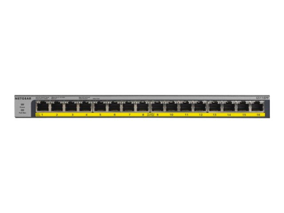 NETGEAR GS116LP - Commutateur - 16 x 10/100/1000 (PoE+) - de bureau, Montable sur rack, fixation murale - PoE+ (76 W) - Tension CC GS116LP-100EUS