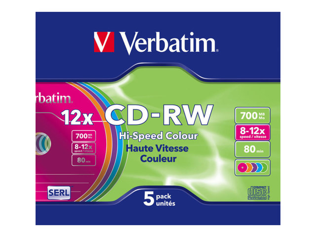 Verbatim DataLifePlus Hi-Speed - 5 x CD-RW - 700 Mo (80 min) 8x - 12x - boîtier CD étroit 43167
