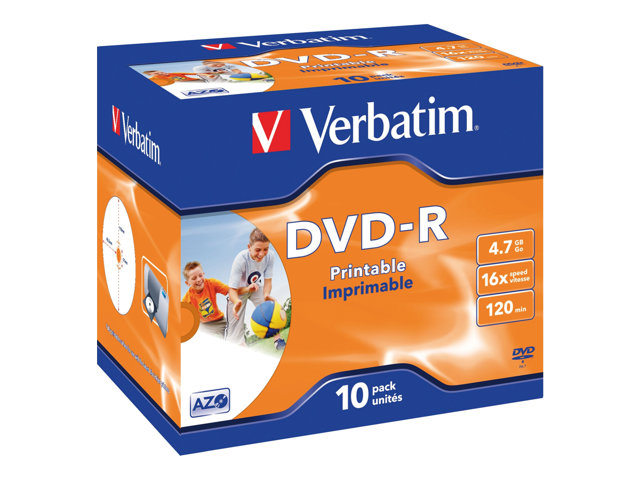Verbatim - 10 x DVD-R - 4.7 Go 16x - surface imprimable photo large - boîtier CD